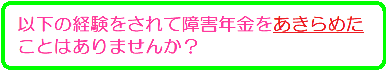 Q.働いていて収入があると権利が出来ても障害年金がもらえないとか聞いたけど・・・A.20歳前に初診日がある障害基礎年金の場合は前年の所得額によっては減額される場合がありますが、 20歳以降に初診日がある障害年金は所得に関係なく受給できます。Q.私は70歳ですが、社労士に相談したら「65歳以上では請求しても受給は難しいのでやめたほうが いい」と言われたのであきらめた・・・A.65歳以上で請求する場合は初診日が65歳になる前にあれば請求できます。その場合、初診日から 1年6月+3月以内の時期で診断書が取れる必要があります。ですので、最初からあきらめる必要は ありません。Q.ある病院で障害年金について尋ねたら、「あなたの状態では無理じゃないですかね・・・」と言われ てあきらめました・・・A.障害年金の可否は医師の診断書や見立てだけで判断されるものではありません。要はその傷病によって どれほど日常生活や労働が制限されるのかがポイントになってきます。医師の意見は参考にはなります が、それが全てではないという事を知っておいてください。Q.年金事務所で障害年金の請求について相談したら、「今の状況では請求は難しいですね」と言われて、 そのまま時間が過ぎてしまった・・・A.年金事務所では原則請求に関するルールを教えてくれます。その上で現在のお客様の情報から考えうるア ドバイスしてくれます。あくまでお客様の情報だけで判断しますので、それ以上のアドバイスはできませ ん。社労士であれば時間を掛けてお客様の状況を事細かくお聞きいたしますので別の方法を探すことがで き、請求に持っていくことも十分可能です。以上の経験をお持ちのみなさま、一度、弊事務所へお電話またはメールを下さい。弊所は”ゼロ”から お客様のお話を逐一伺わせていただきます。どこかに請求できる条件が隠れているはずです。あきらめる 前に今一度勇気を出して前に”一歩”を踏み出してみましょう! お待ちしております!